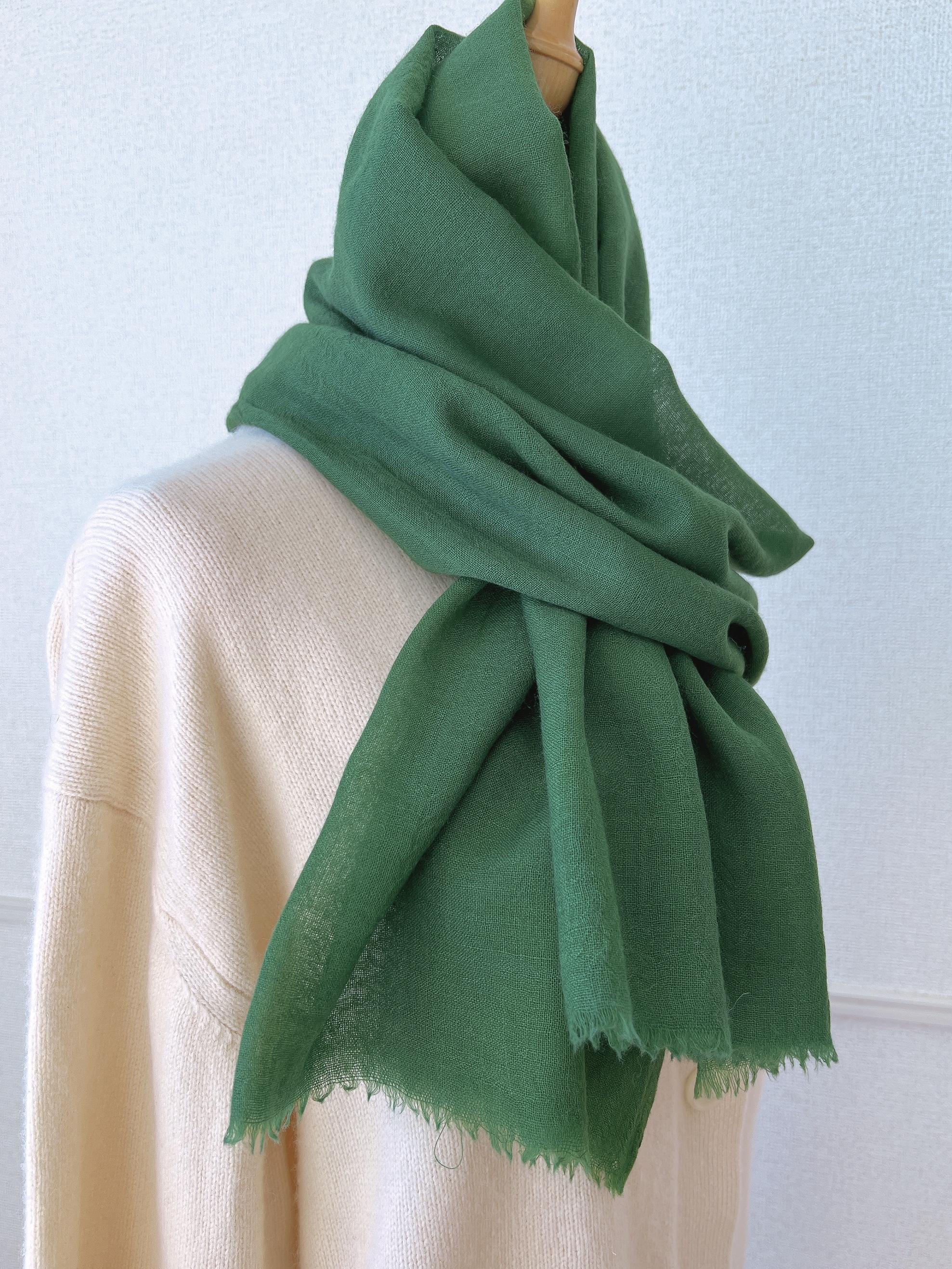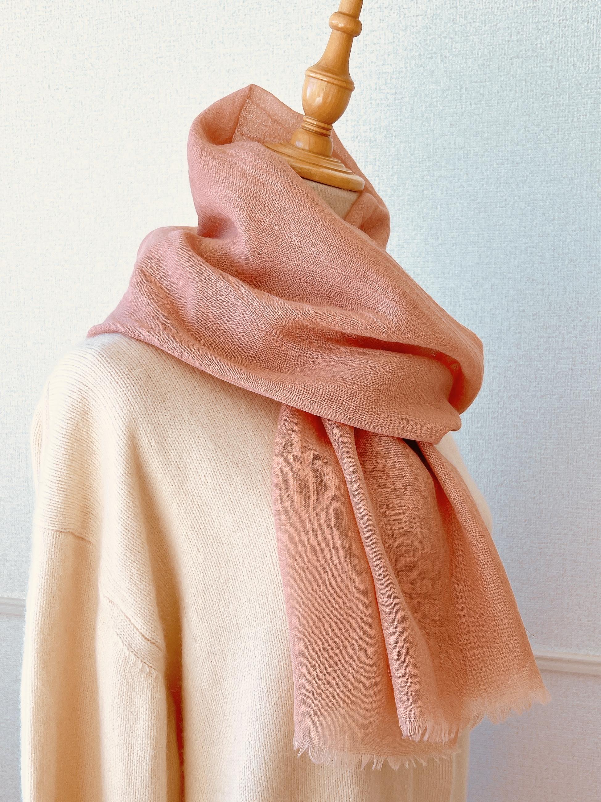 植物の色が宿った、肌触りのよいストールを羽織ると、肌からゆるめて緊張が解れるのを感じられます。植物の色は周波数が高いため、私たちの脳が光の反射で色を認識すると、波長に変化をもたらし、整えてくれるからです。